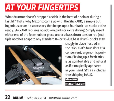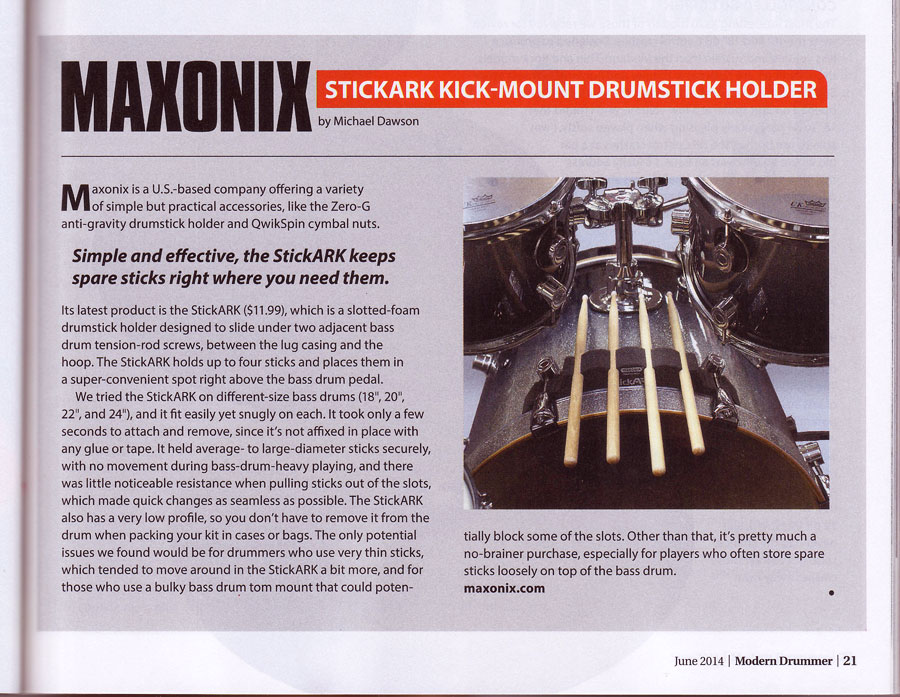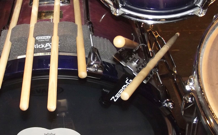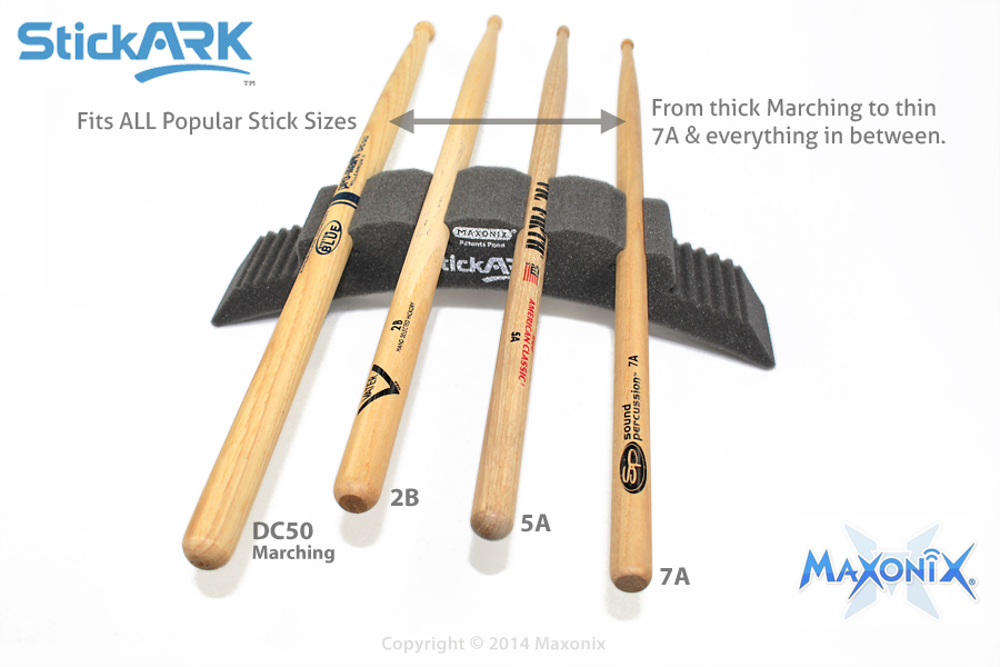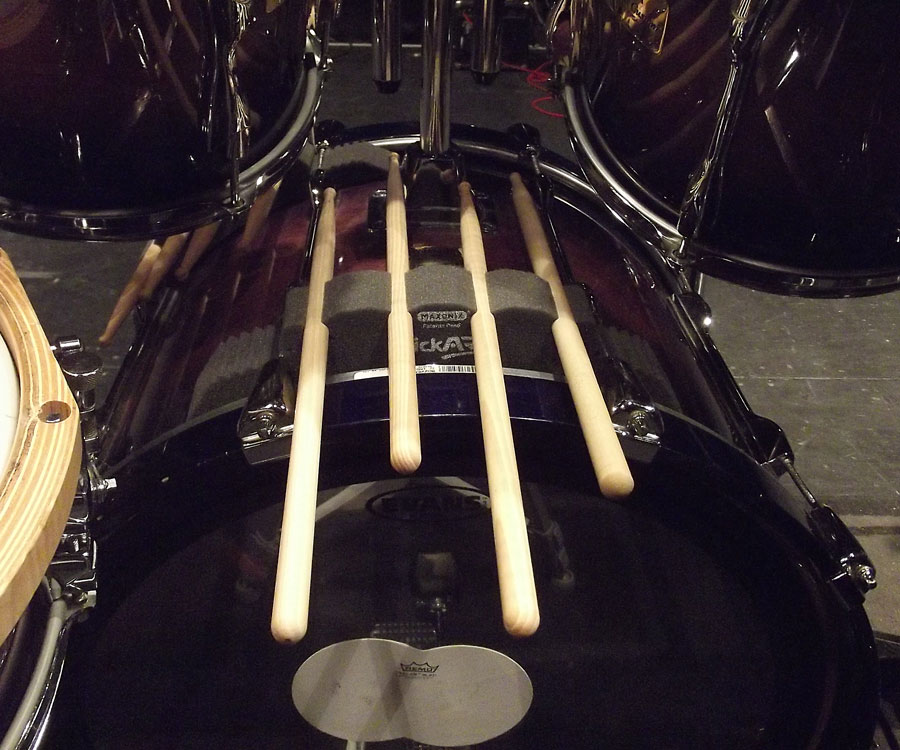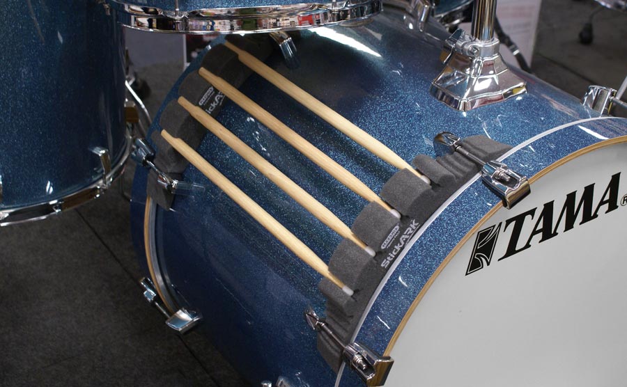 The top of a kick drum (bass drum) is the first place drummers naturally want to put their sticks. Now, thanks to StickARK, drummers can keep 4 sticks lined up in perfect order. There's more; thanks to the StickARK's extreme flexibility, it can also hold brushes, bundles & other unusually shaped percussion items.